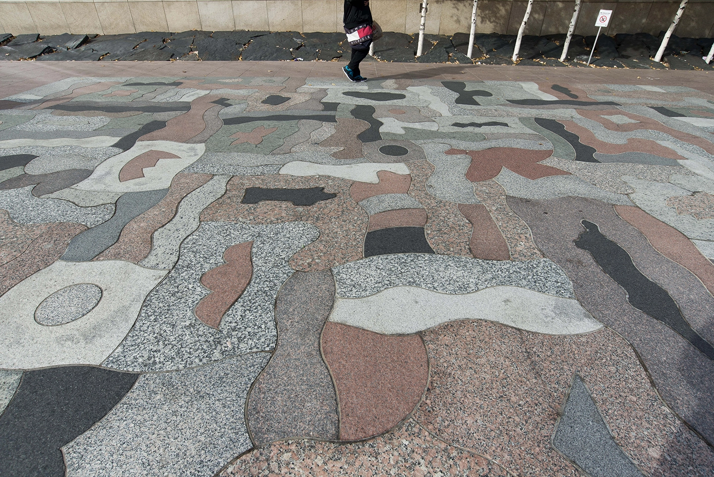The 200-piece granite mosaic, last located near Minneapolis Central Library is restored and reinstalled in the Loring Woods on Nicollet in Fall 2018.