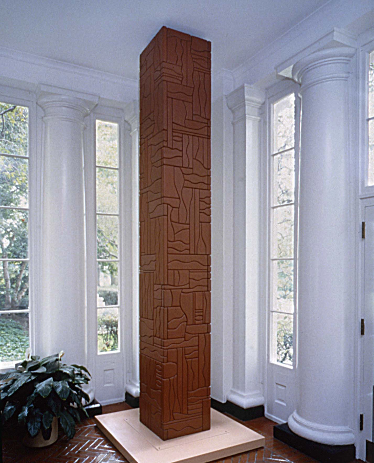 Installation view of Red Totem, 1980 in Twentieth Century American Sculpture at The White House: Honoring Native America. RC 112(6):9.7a, Billie Jane Baguley Library and Archives, The Heard Museum, Phoenix AZ. © George Morrison Estate. Courtesy the Heard Museum, photo by Craig Smith.